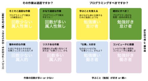 機械学習, データサイエンスを志向してPythonを勉強したり,この辺のエントリーで本を読み漁ったりすると*1, もしかして, 私の仕事ってプログラミングで楽になるのでは!? と気がつく(もしくはそういう記事・本を読んで触発される)瞬間があるかと思います, …
